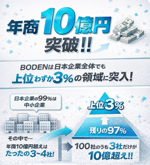 第14期のBODENの決算は、前期(年商=売上 8億円)から、、25%売上増の年商10億円を達成しました!